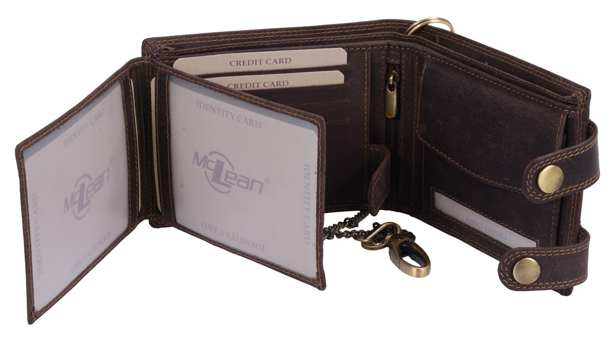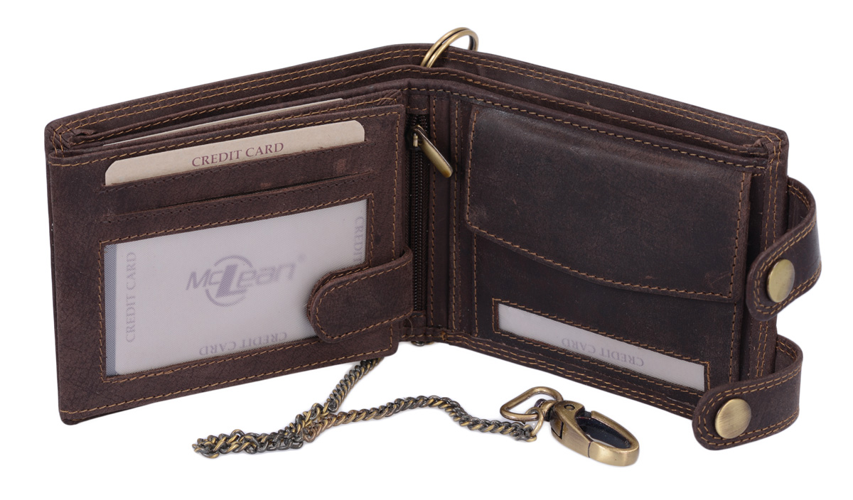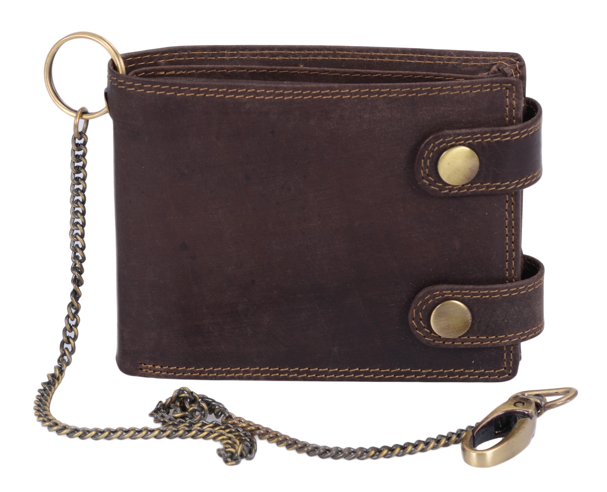 Mobile Preview: Bikerkombi- & Truckerbörse MCL im Vintage-Stil in Echt-Leder mit Kette, braun - LEAS Chain-Series