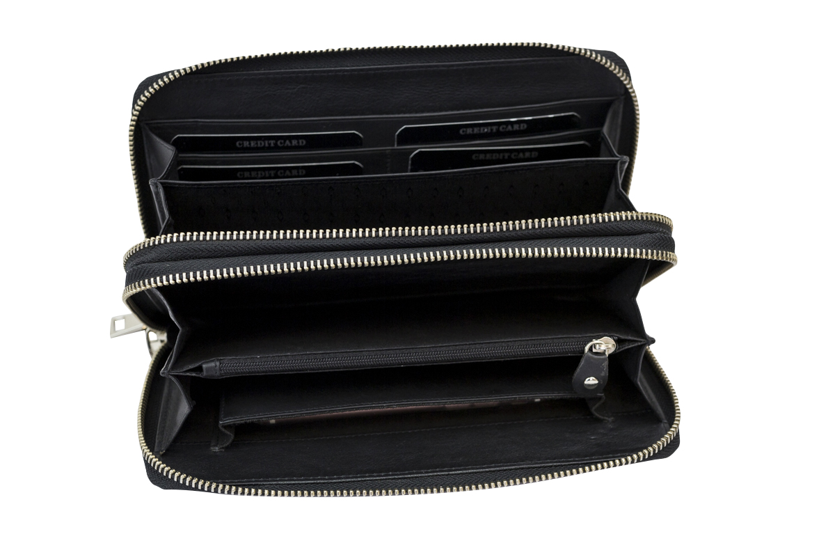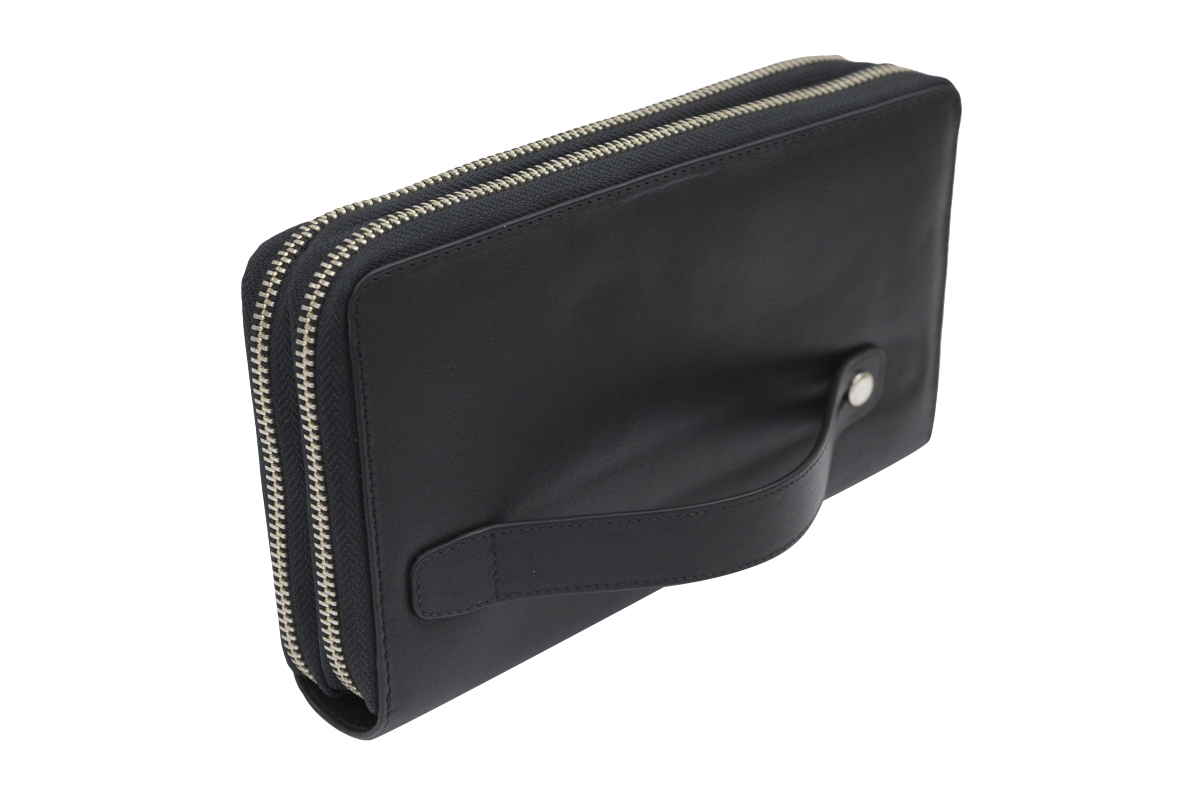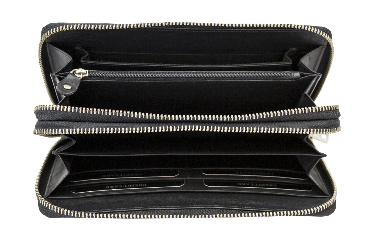 Langbörse mit umlaufenden doppel Reißverschluss LEAS in Echt-Leder, schwarz