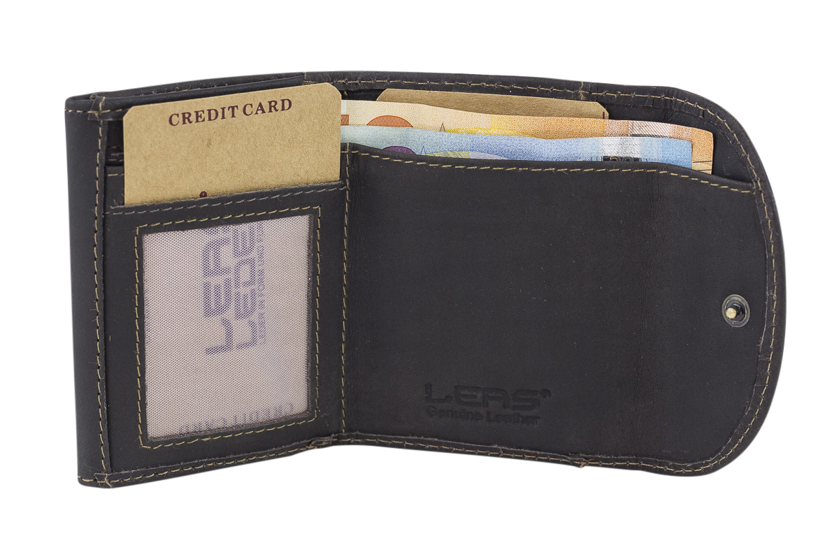 Mini Geldbörse kleines Portemonaie mit Geschenkbox LEAS in Echt-Büffel-Leder, braun - Vintage-Collection 9,5x6,5x1cm (BxHxT)