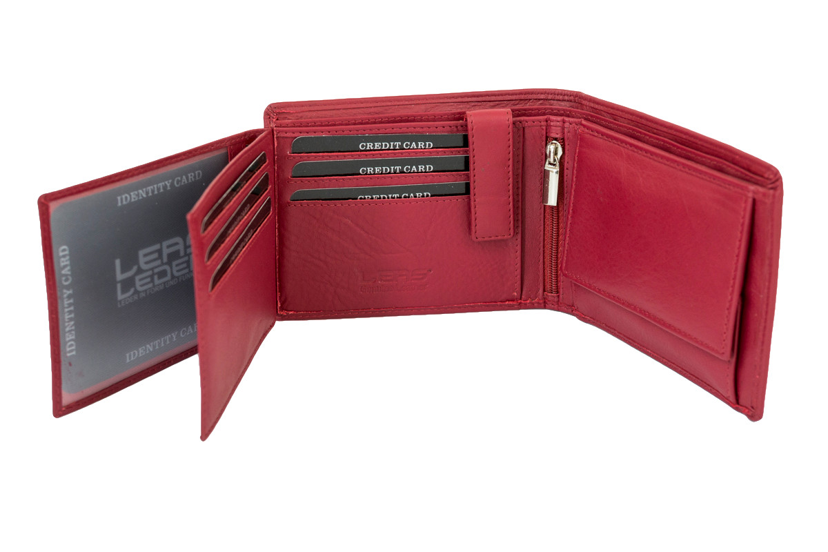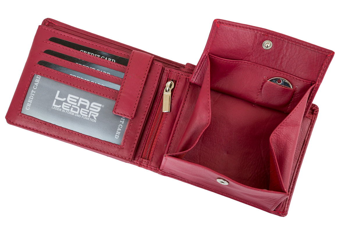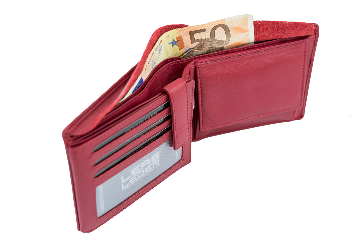 der zusätzlichen linken Seitenklappe, bietet diese Lederbörse die Möglichkeit, Kreditkarten